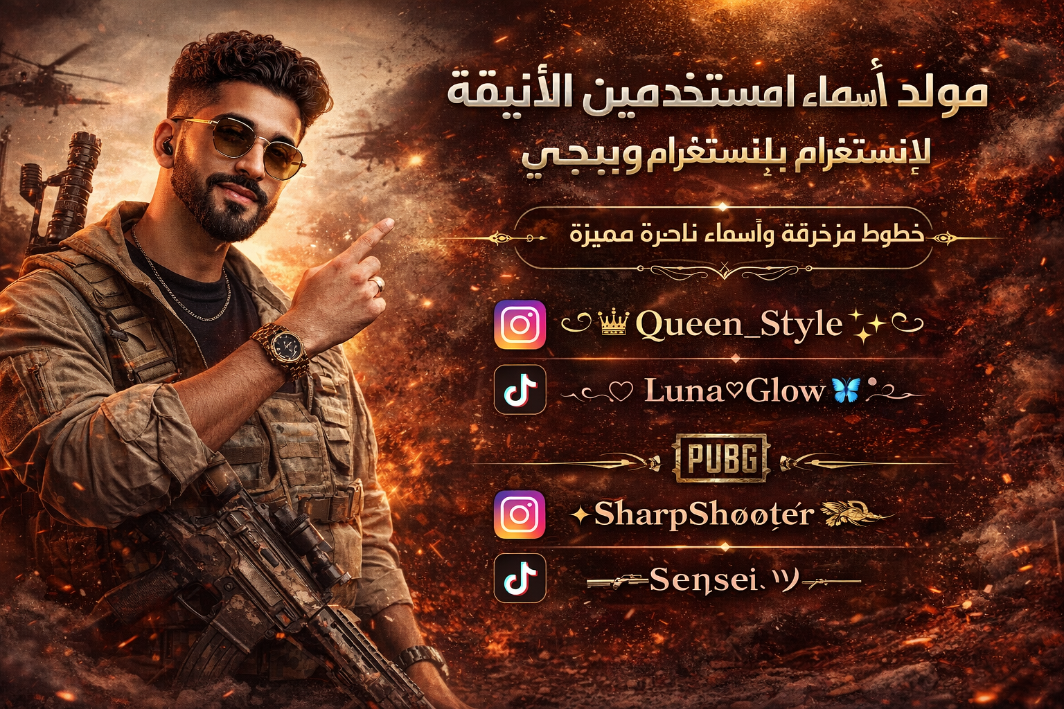 مولد أسماء المستخدمين الأنيقة لإنستغرام وببجي